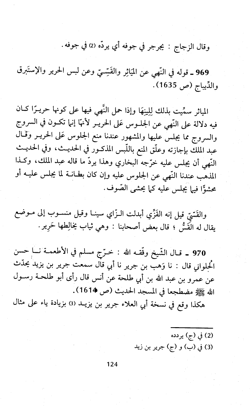 969 - قوله في النّهي عن الميَاثِر والقَسِّيّ وعن لبس الحرير والإستَبرق والدِّيباج (ص 1635).