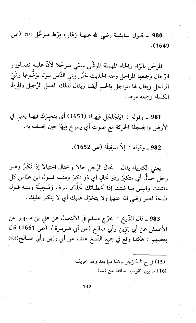980 - قول عايشة -رضي الله عنها- وَعَليهِ مِرْط مرحَّل (¬15) (ص 1649).