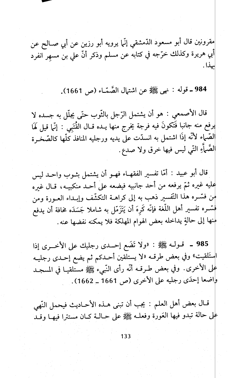 984 - قوله: نهى - صلى الله عليه وسلم - عن اشتمال الصَّمّاء (ص 1661).