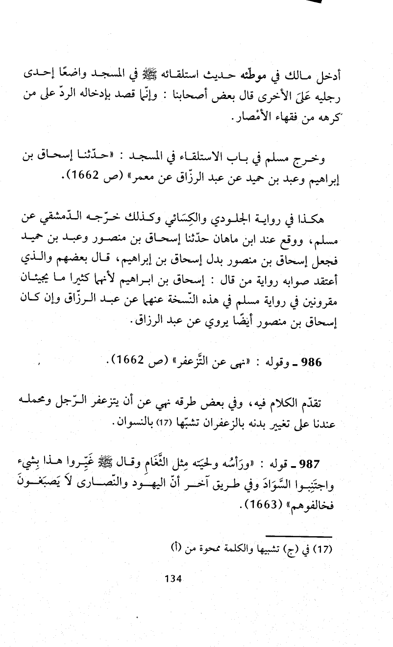 986 - وقوله: "نهى عن التَّزعفر" (ص 1662).