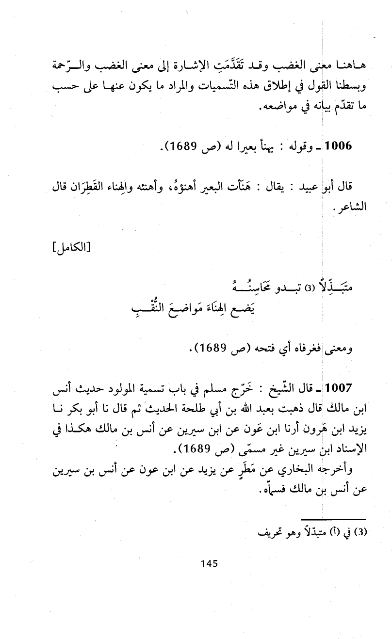1006 - وقوله: يهنأ بعيرا له (ص 1689).