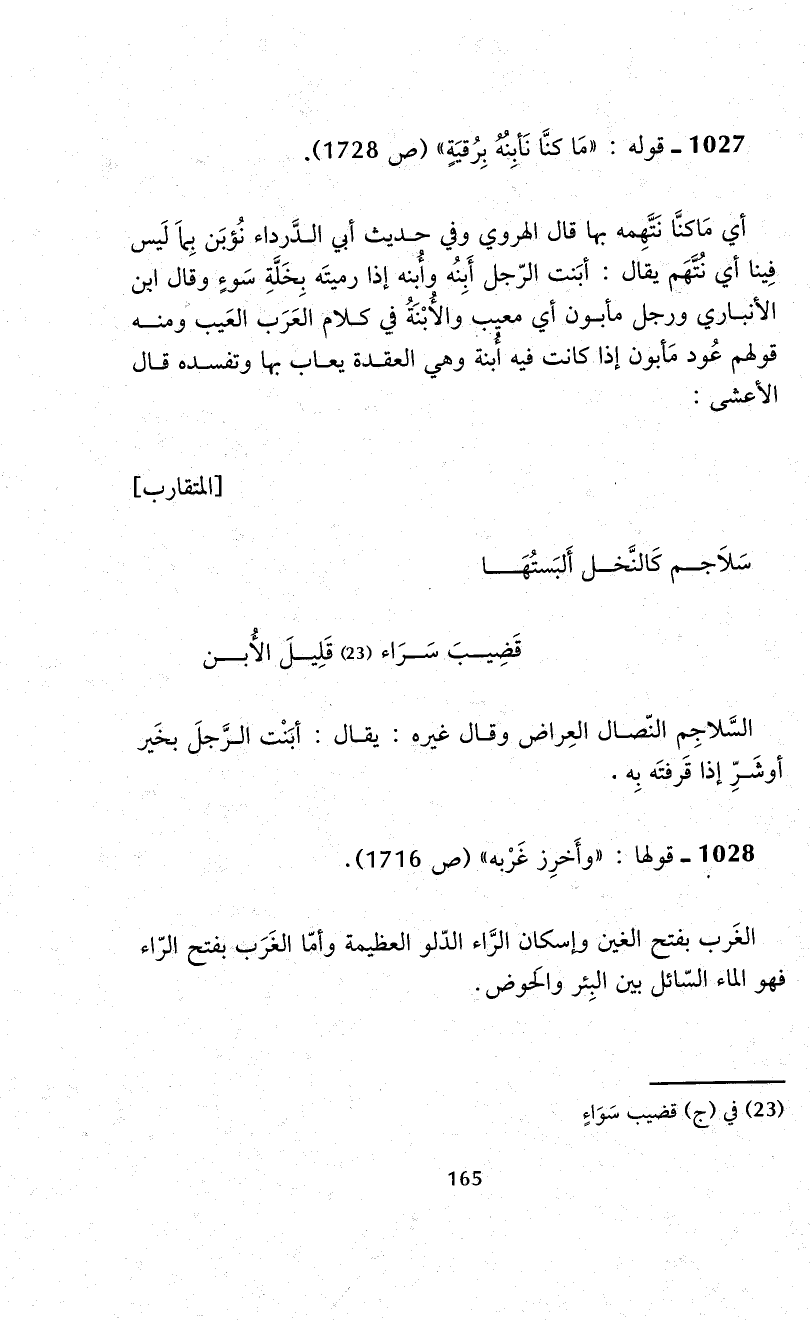 1028 - قولها: "وأَخرِز غَرْبه" (ص 1716).