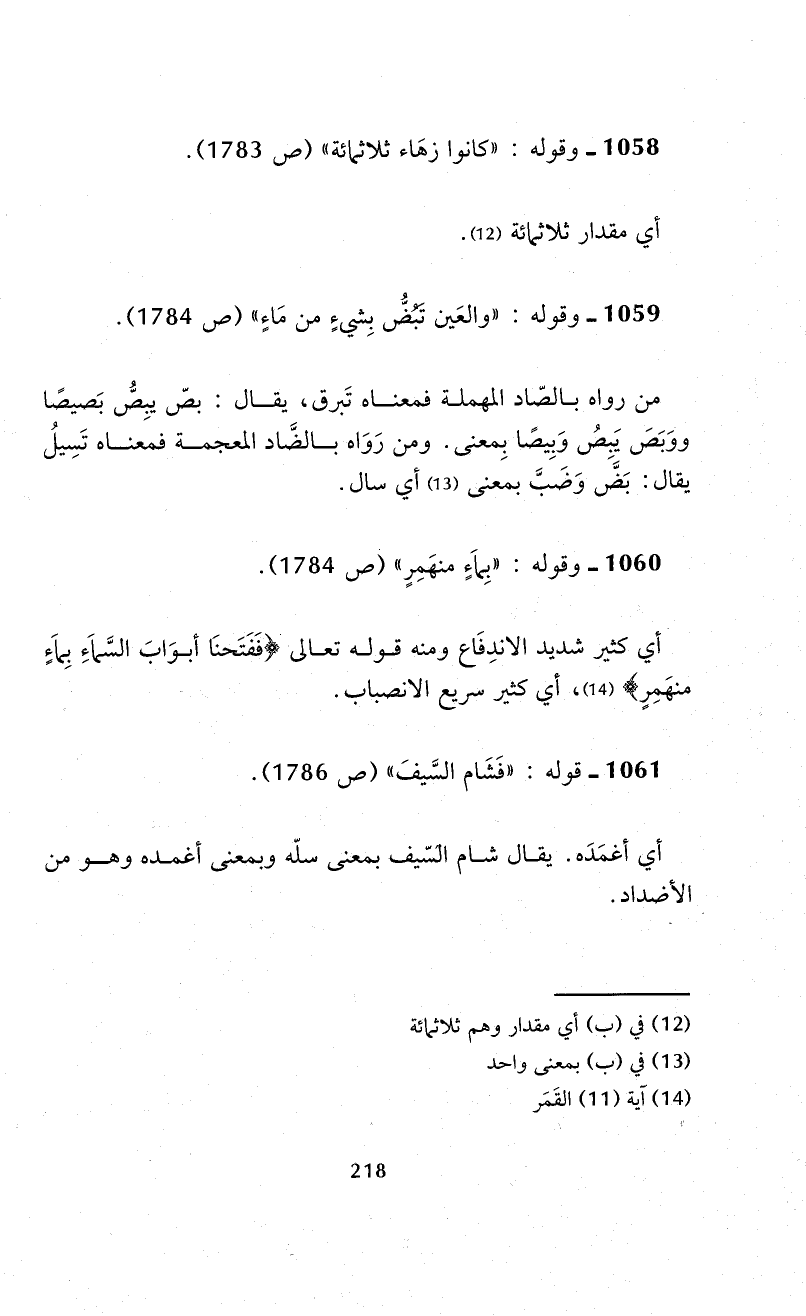 1060 - وقوله: "بِماَءٍ منهَمِرٍ" (ص 1784).