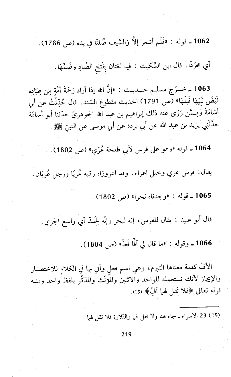 1066 - وقوله: "ما قال لي أفًّا قَطّ" (ص 1804).