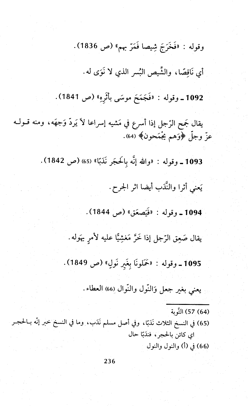 1092 - وقوله: "فَجَمَحَ موسَى بأثَرِهِ" (ص 1841).