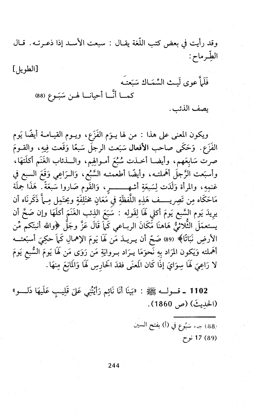 فَلَماَّ عوى لَيث السِّمَاك سَبَعتَه ... كما أنَّا أحيانا لهن سَبَوع (¬88)