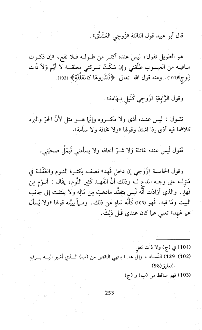 قال أبو عبيد قول الثالثة "زَوجِي العَشَنَّق".