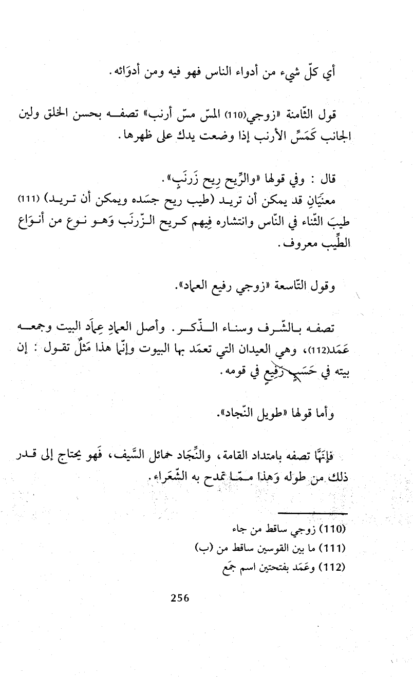 معنَيَانِ قد يمكن أن تريد (طيب ريح جسَده ويمكن أن تريد) (¬111) طيبَ الثّناء في النّاس وانتشاره فِيهم كريح الزّرنَب وَهو نوع من أنوَاع الطيب معروف.
