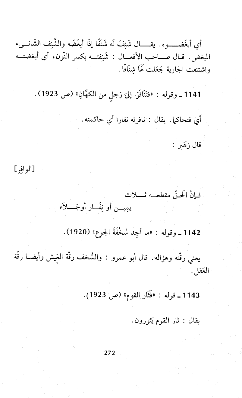 1141 - وقوله: "فتَنَافَرَا إلىَ رَجلٍ من الكهَّانِ" (ص 1923).