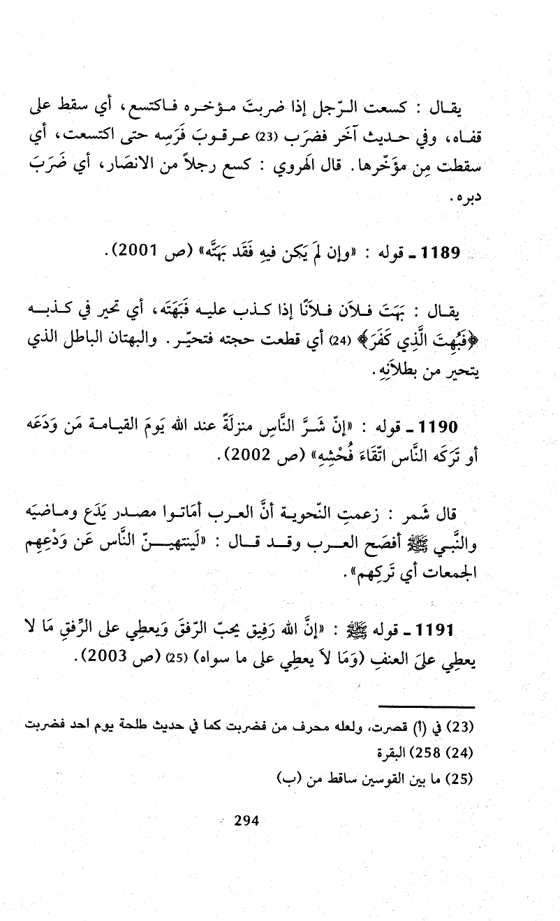 1189 - قوله: "وإن لمَ يَكن فيهِ فَقَد بَهَتَّه" (ص 2001).