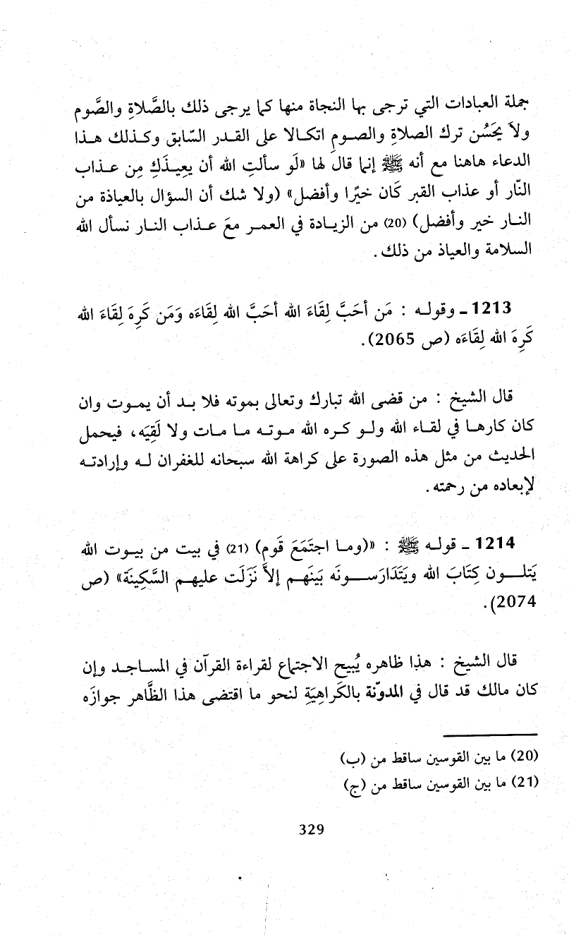 1213 - وقوله: مَن أحَبَّ لِقَاءَ الله أحَبَّ الله لِقَاءَه وَمَن كَرِهَ لِقَاءَ الله كَرِهَ الله لِقَاءَه (ص 2065).
