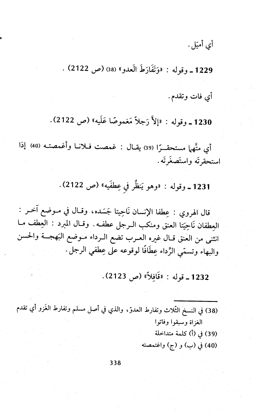 1231 - وقوله: "وهو يَنظُر فيِ عِطفَيه" (ص 2122).