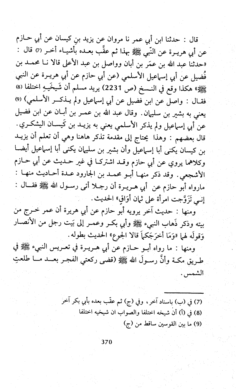 قال بعضهم: وهذا يحتاج إلى مقدمة تذكر ها هنا وهي أن تعلم أن يزيد بن كيسان يكنى أبا إسماعيل وأن بشير بن سليمان يكنى أبا إسماعيل أيضا وكلاهما يروي عن أبي حازم وقد اشتركا في غير حديث عن أبي حازم الأشجعي. وقد ذكر منها أبو محمد بن الجارود عدة أحاديث منها: ما رواه أبو حازم عن أبي هريرة أن رجلا أتى رسول الله - صلى الله عليه وسلم - فقال: إني تَزَوَّجت امرأة على ثمان أوَاقٍ" الحديث.
