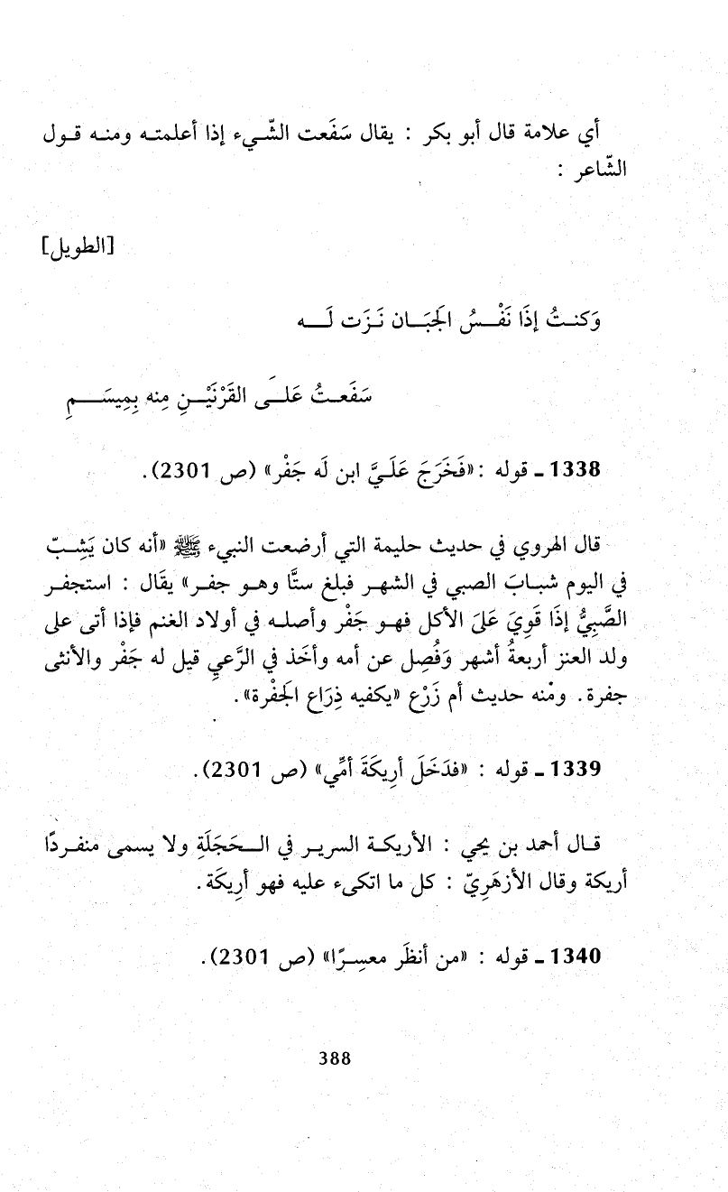 1338 - قوله: "فَخَرَجَ عَلَيَّ ابن لَه جَفْر" (ص 2301).