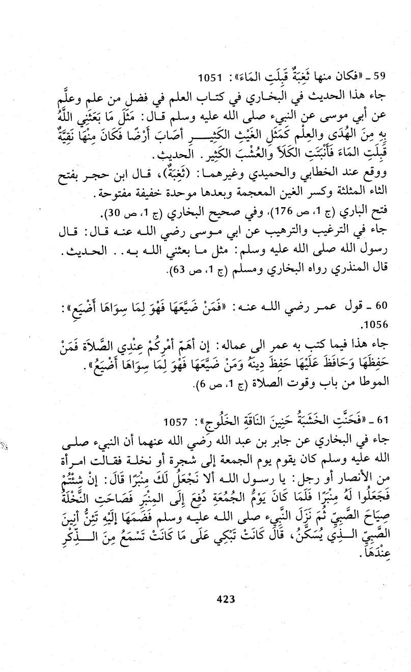 59 - "فكان منها ثَغِبَةٌ قَبِلَتِ المَاءَ": 1051.
