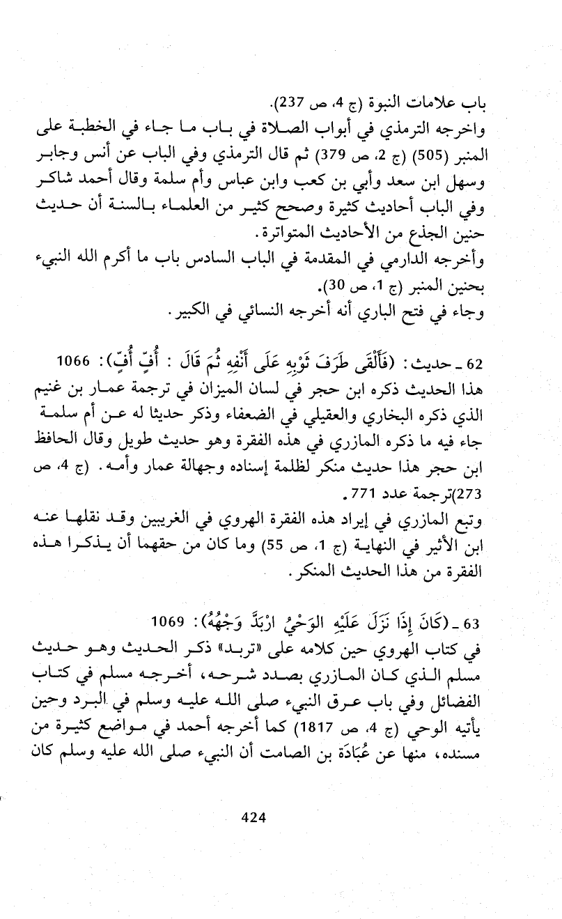 63 - (كَانَ إِذَا نَزَلَ عَلَيْهِ الوَحْيُ ارْبَدَّ وَجْهُهُ): 1069.