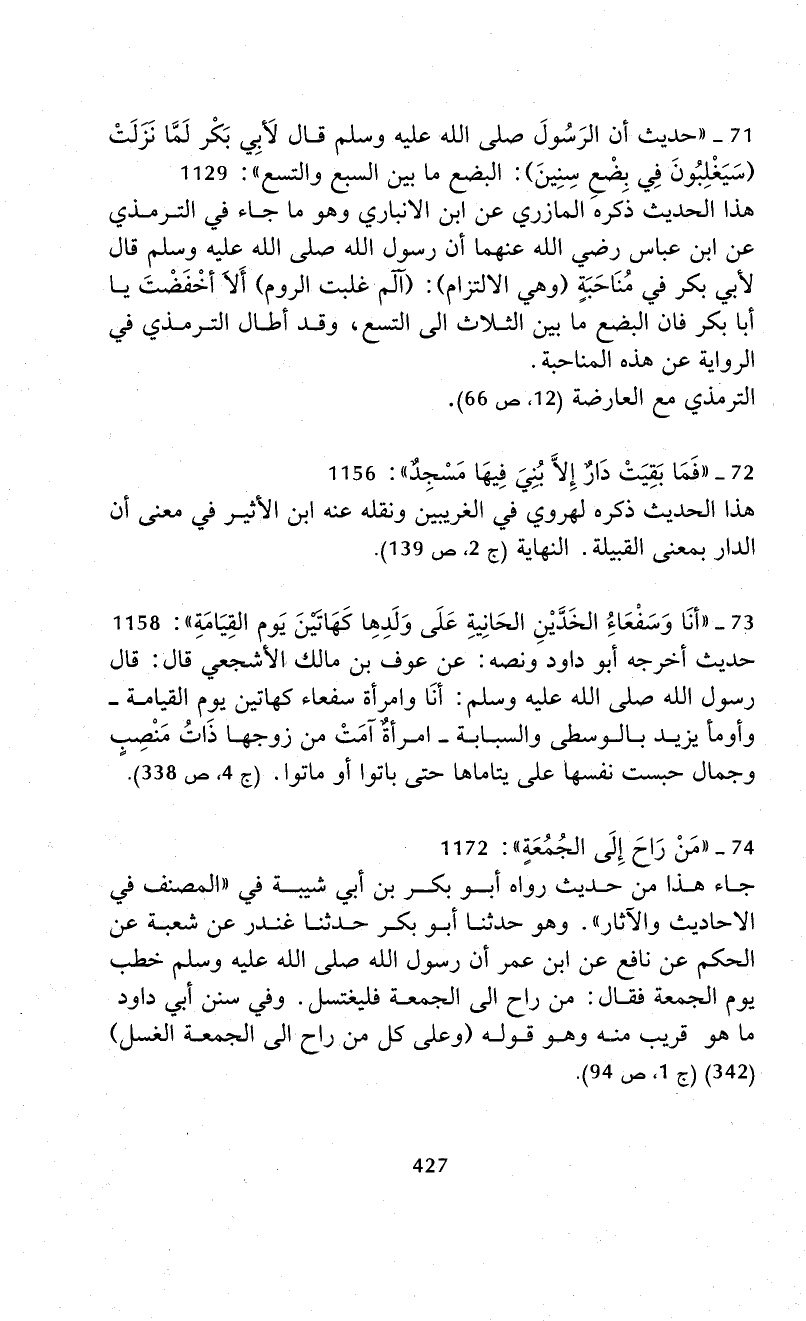 74 - "مَنْ رَاحَ إِلَى الجُمُعَةٍ": 1172.