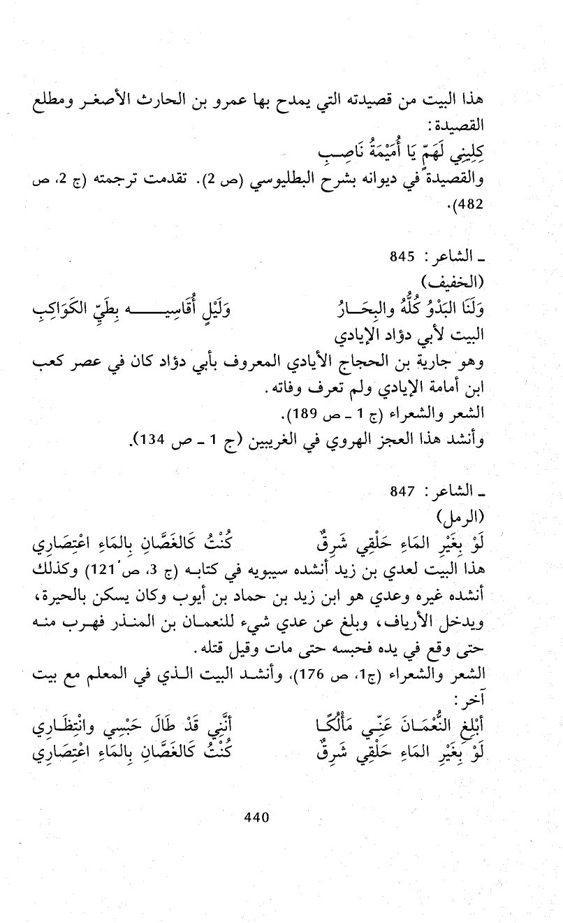 هذا البيت من قصيدته التي يمدح بها عمرو بن الحارث الأصغر ومطلع القصيدة: