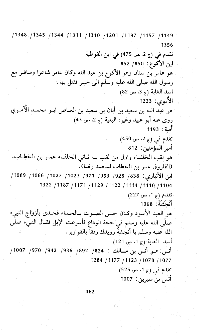 أنس: هو أنس بن مالك: 824/ 892/ 936/ 942/ 970/ 1007/ 1077/ 1078/ 1123/ 1177 /1284