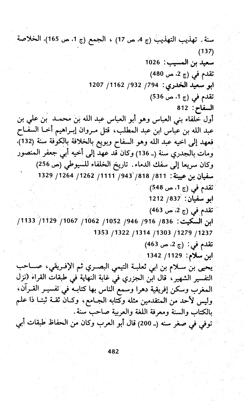 سنة. تهذيب التهذيب (ج 4، ص 17)، الجمع (ج 1، ص 165)، الخلاصة (137).