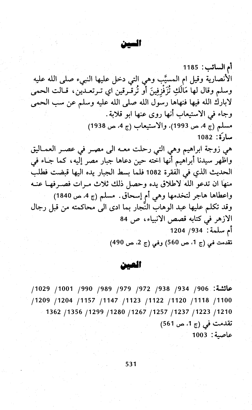 عائشة: 906/ 934/ 938/ 972/ 979/ 989/ 990/ 1001/ 1029/ 1100/ 1118/ 1120/ 1122/ 1123/ 1147/ 1157/ 1204/ 1209/ 1210/ 1223/ 1237/ 1257/ 1267/ 1280/ 1299/ 1356/ 1362.