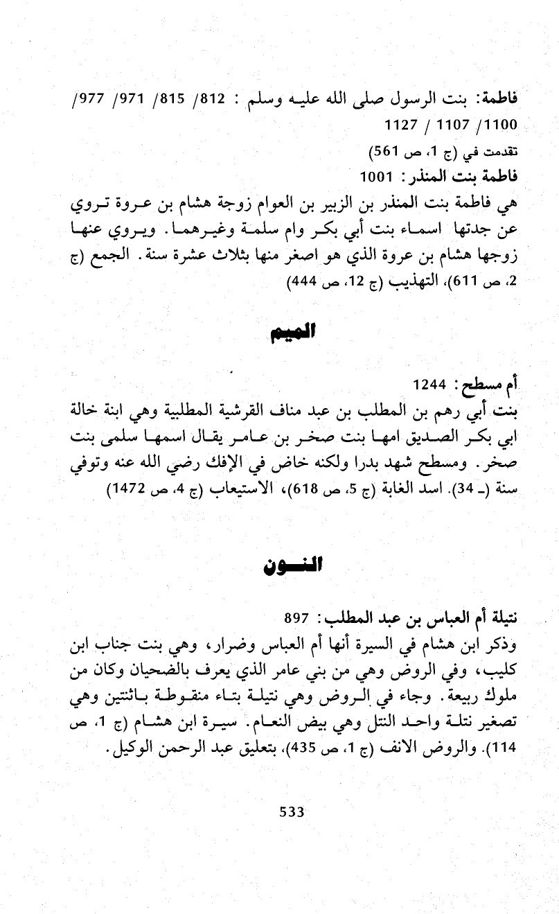 فاطمة: بنت الرسول صلى الله عليه وسلم: 812/ 815/ 971/ 977/ 1100/ 1107/ 1127.