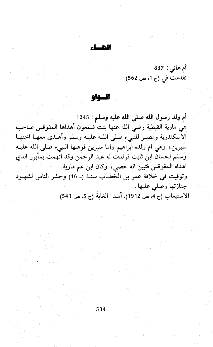 أم ولد رسول الله صلى الله عليه وسلم: 1245.