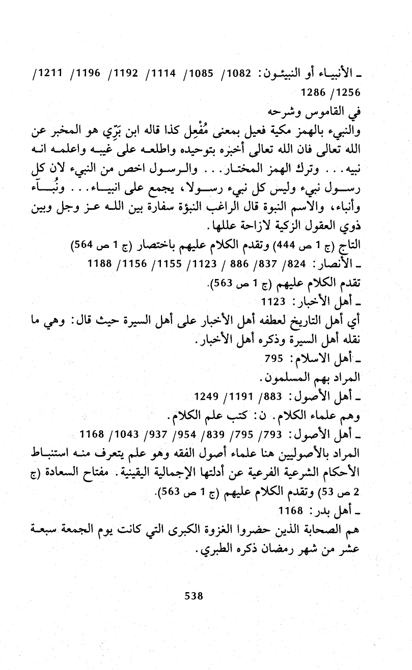 - الأنبياء أو النبيئون: 1082/ 1085/ 1114/ 1192/ 1196/ 1211/ 1256/ 1286.