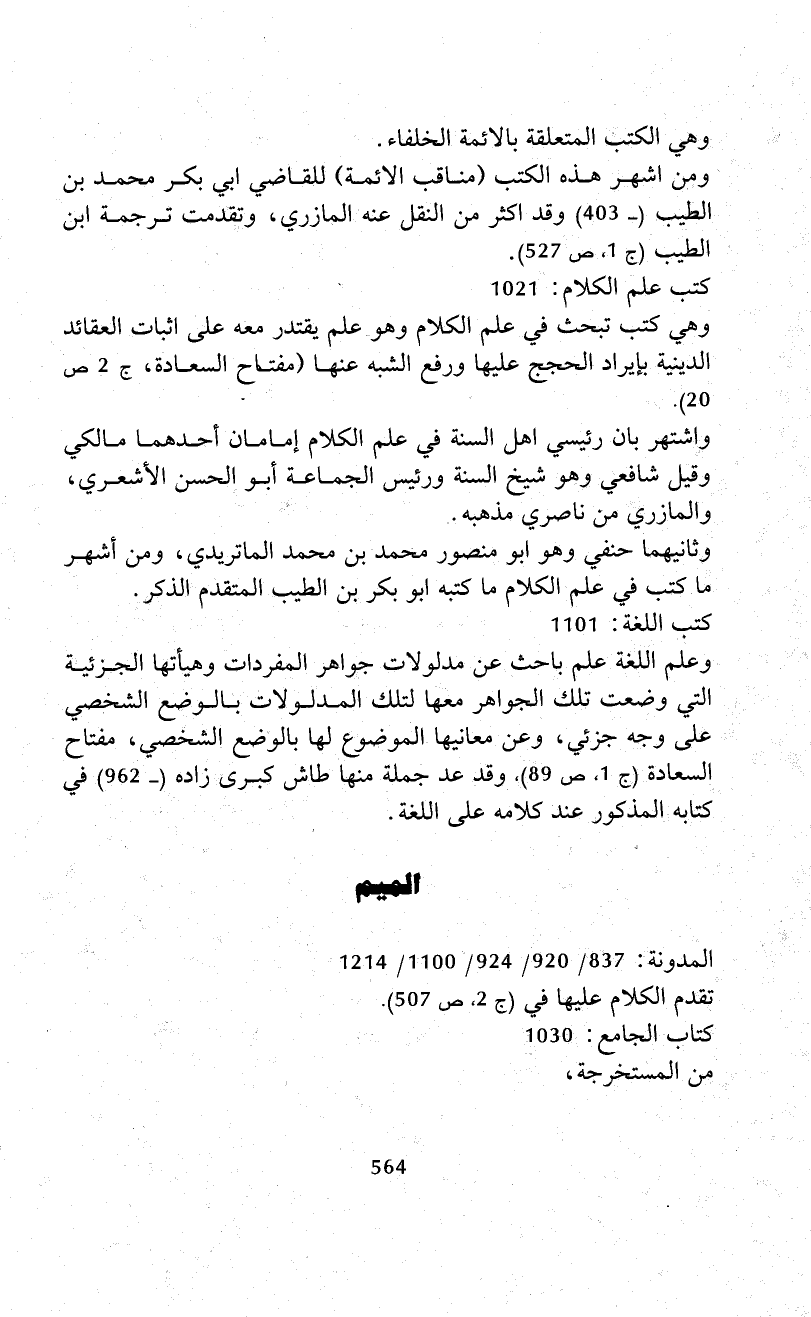 ومن أشهر هذه الكتب (مناقب الأئمة) للقاضي أبي بكر محمد بن الطيب (-403) وقد أكثر من النقل عنه المازري، وتقدمت ترجمة ابن الطيب (ج 1، ص 527).