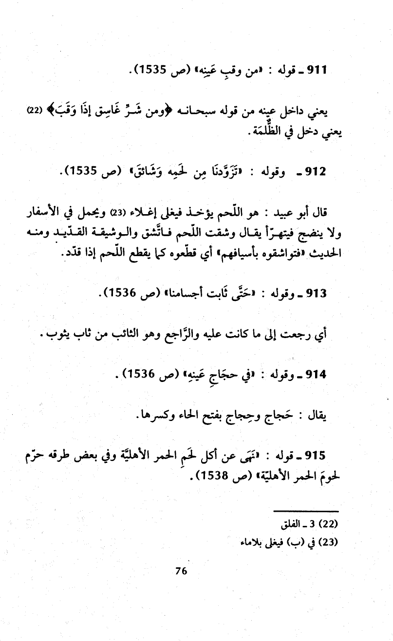 911 - قوله: "من وقبِ عَينِه" (ص 1535).