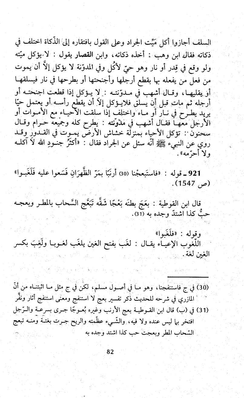 921 - قوله: "فاستَبعجْنا (¬30) أرنَبًا بمَرّ الظَّهرَانِ فَسَعوا عليه فَلَغَبوا" (ص 1547).