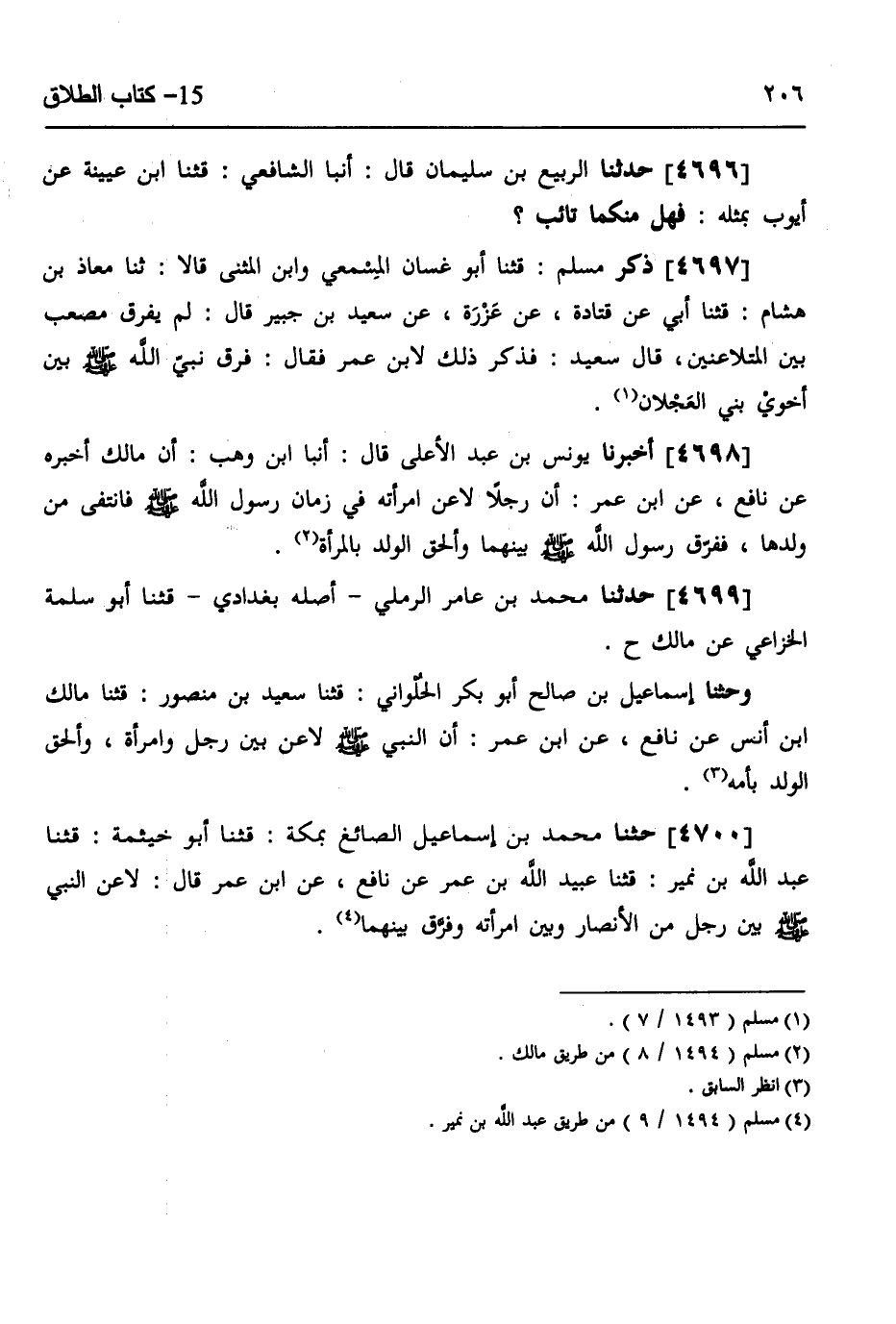 4700 - حثنا مُحَمَّدُ بْنُ إِسْمَاعِيلَ الصَّائِغُ بِمَكَّةَ، قثنا أَبُو خَيْثَمَةَ، قثنا عَبْدُ اللَّهِ بْنُ نُمَيْرٍ، قثنا عُبَيْدُ اللَّهِ بْنُ عُمَرَ، عَنْ نَافِعٍ، عَنِ ابْنِ عُمَرَ، قَالَ: «§لَاعَنَ النَّبِيُّ صَلَّى اللهُ عَلَيْهِ وَسَلَّمَ بَيْنَ رَجُلٍ مِنَ الْأَنْصَارِ وَبَيْنَ امْرَأَتِهِ وَفَرَّقَ بَيْنَهُمَا»