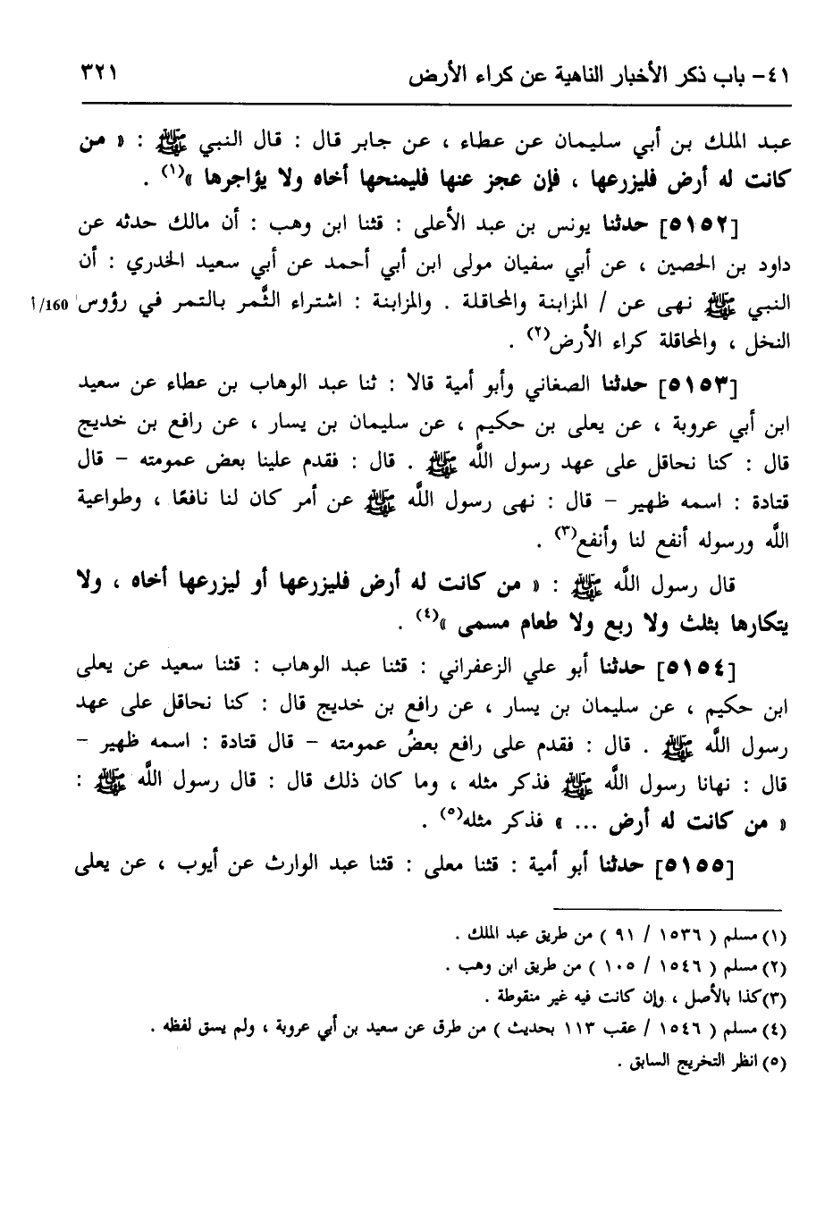 5154 - حَدَّثَنَا أَبُو عَلِيٍّ الزَّعْفَرَانِيُّ، قثنا عَبْدُ الْوَهَّابِ، قثنا سَعِيدٌ، عَنْ يَعْلَى بْنِ حَكِيمٍ، عَنْ سُلَيْمَانَ بْنِ يَسَارٍ، عَنْ رَافِعِ بْنِ خَدِيجٍ، قَالَ: §كُنَّا نُحَاقِلُ عَلَى عَهْدِ رَسُولِ اللَّهِ صَلَّى اللهُ عَلَيْهِ وَسَلَّمَ "، قَالَ: فَقَدِمَ عَلَى رَافِعٍ بَعْضُ عُمُومَتِهِ، قَالَ قَتَادَةُ: اسْمُهُ ظَهِيرٌ، قَالَ: نَهَانَا رَسُولُ اللَّهِ صَلَّى اللهُ عَلَيْهِ وَسَلَّمَ، فَذَكَرَ مِثْلَهُ وَمَا كَانَ ذَلِكَ، قَالَ: قَالَ رَسُولُ اللَّهِ صَلَّى اللهُ عَلَيْهِ وَسَلَّمَ: «مَنْ كَانَتْ لَهُ أَرْضٌ» فَذَكَرَ مِثْلَهُ،