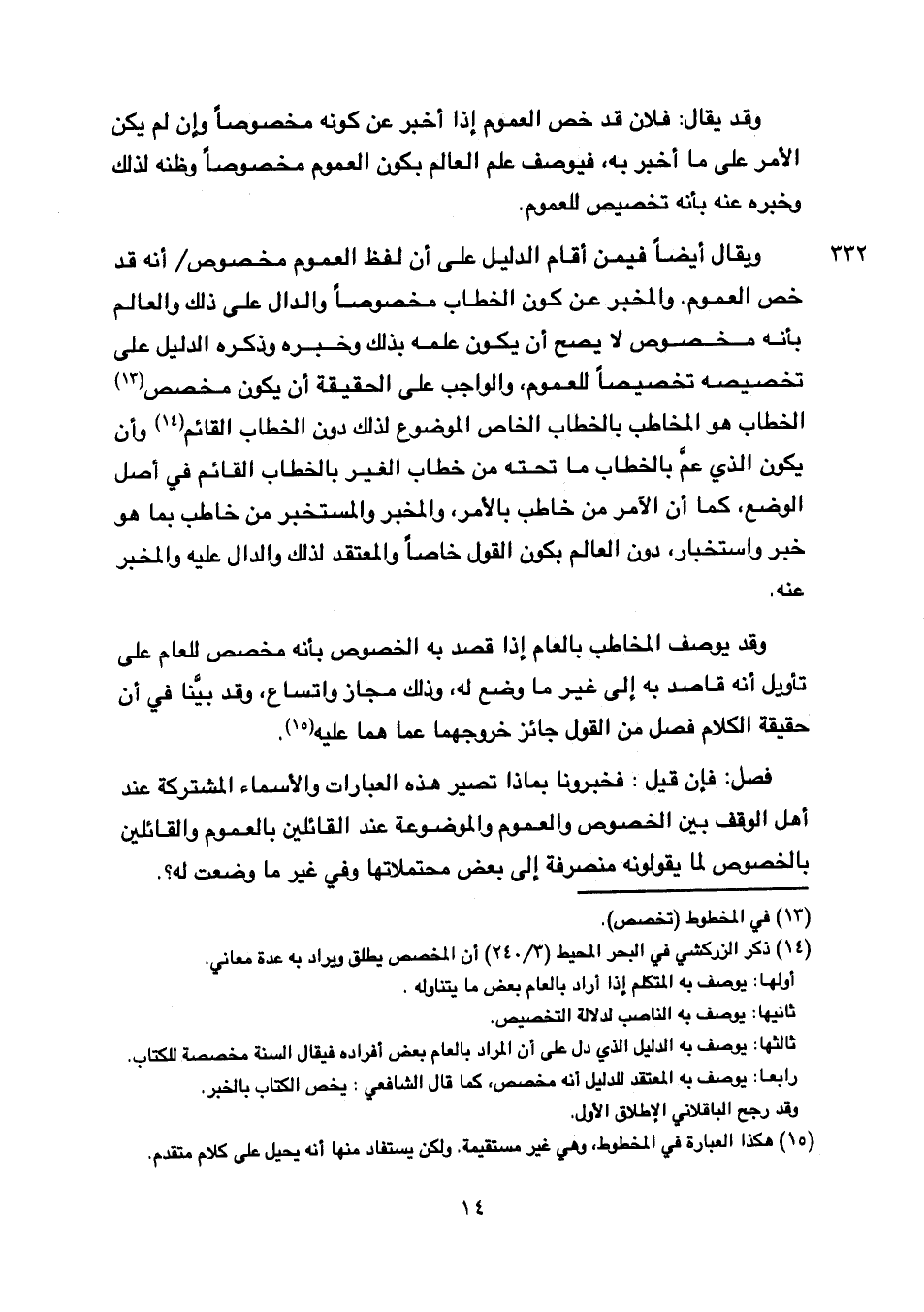 ويقال أيضا فيمن أقام الدليل على أن لفظ العموم مخصوص ⦗٣٢٢⦘ أنه قد خص العموم. والمخبر عن كون الخطاب مخصوصا والدال على ذلك والعالم بأنه مخصوص لا يصح أن يكون علمه بذلك وخبره وذكره الدليل على تخصيصه تخصيصا للعموم والواجب على الحقيقة أن يكون مخصص الخطاب هو المخاطب بالخطاب الخاص الموضوع لذلك دون الخطاب القائم وأن يكون الذي عم بالخطاب ما تحته من خطاب الغير بالخطاب القائم في أصل الوضع, كما أن الآمر من خاطب بالأمر, والمخبر والمستخبر من خاطب بما هو خر واستخبار، دون العالم بكون القول خاصا والمعتقد لذلك والدال عليه والمخبر عنه.