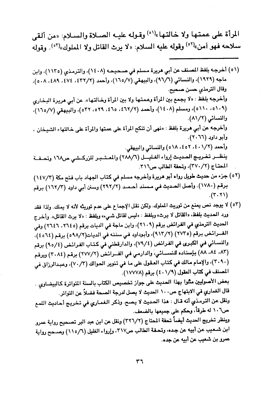 المرأة على عمتها ولا خالتها" وقوله عليه الصلاة والسلام: "من ألقى سلاحه فهو آمن" وقوله عليه السلام: "لا يرث القاتل ولا المملوك"، وقوله