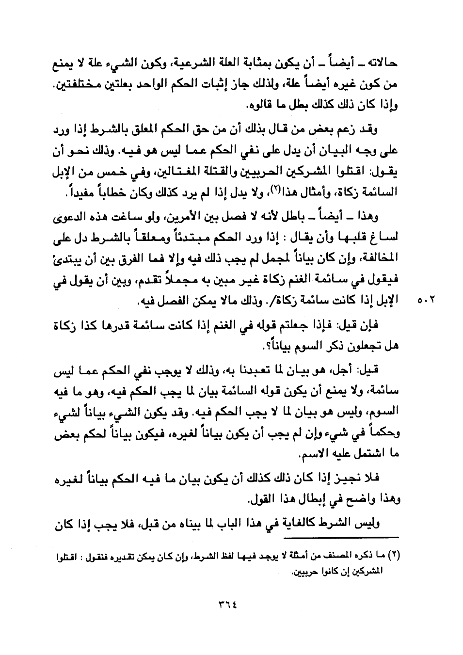 وهذا- أيضاً- باطل لأنه لا فصل بين الأمرين، ولو ساغت هذه الدعوى لساغ قلبها وأن يقال: إذا ورد الحكم مبتدئاً ومعلقا بالشوط دل على المخالفة، وإن كان بياناً لمجمل لم يجب ذلك فيه وإلا فما الفرق بين أن يبتدئ فيقول في سائمة الغنم زكاة غير مبين به مجملاً تقدم، وبين أن يقول في الإبل إذا كانت سائمة زكاة/، وذلك ما لا يمكن الفصل فيه.