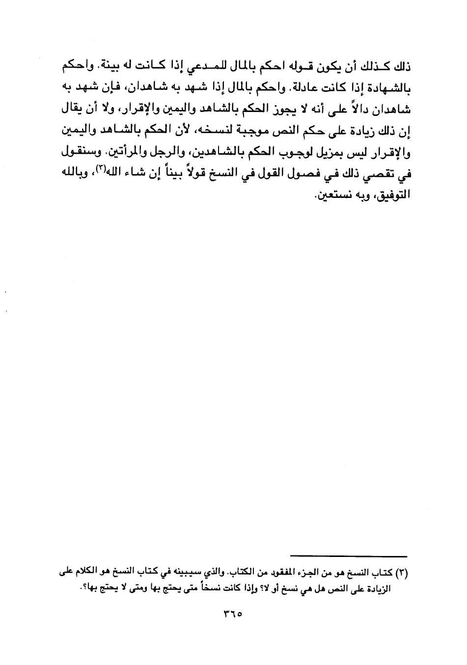 ذلك كذلك أن يكون قوله احكم بالمال للمدعي إذا كانت له بينة. واحكم بالشهادة إذا كانت عادلة، واحكم بالمال إذا شهد به شاهدان، فإن شهد به شاهدان دالاً على أنه لا يجوز الحكم بالشاهد واليمين والإقرار، ولا أن يقال إن ذلك زيادة على حكم النص موجبة لنسخه، لأن الحكم بالشاهد واليمين والإقرار ليس بمزيل لوجوب الحكم بالشاهدين، والرجل والمرأتين، وسنقول في تقصي ذلك في فصول القول في النسخ قولا بينا إن شاء الله، وبالله التوفيق، وبه تستعين.