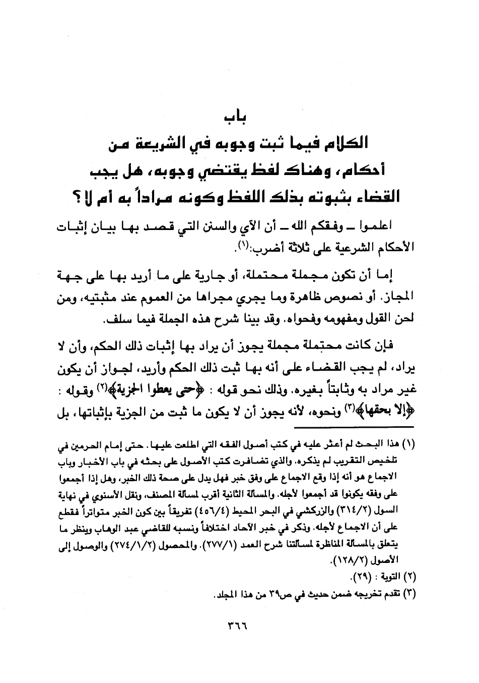 اعلموا - وفقكم الله - أن الآي والسنن التي قصد بها بيان إثبات الأحكام الشرعية على ثلاثة أضرب: