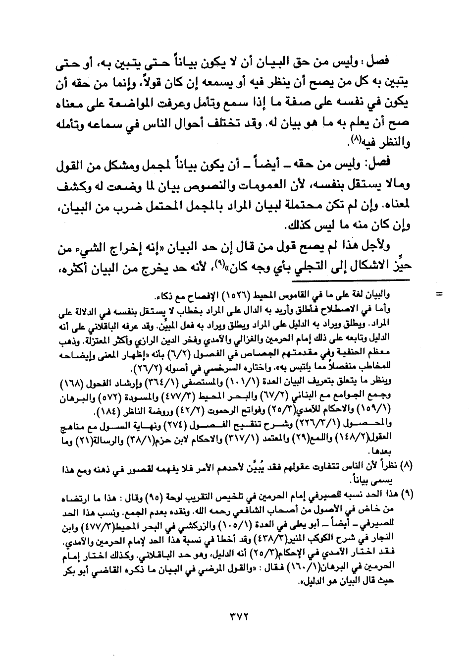 ولأجل هذا لم يصح قول من قال إن حد البيان "إنه إخراج الشيء من حيز الإشكال إلى التجلي بأي وجه كان"، لأنه حد يخرج من البيان أكثره،