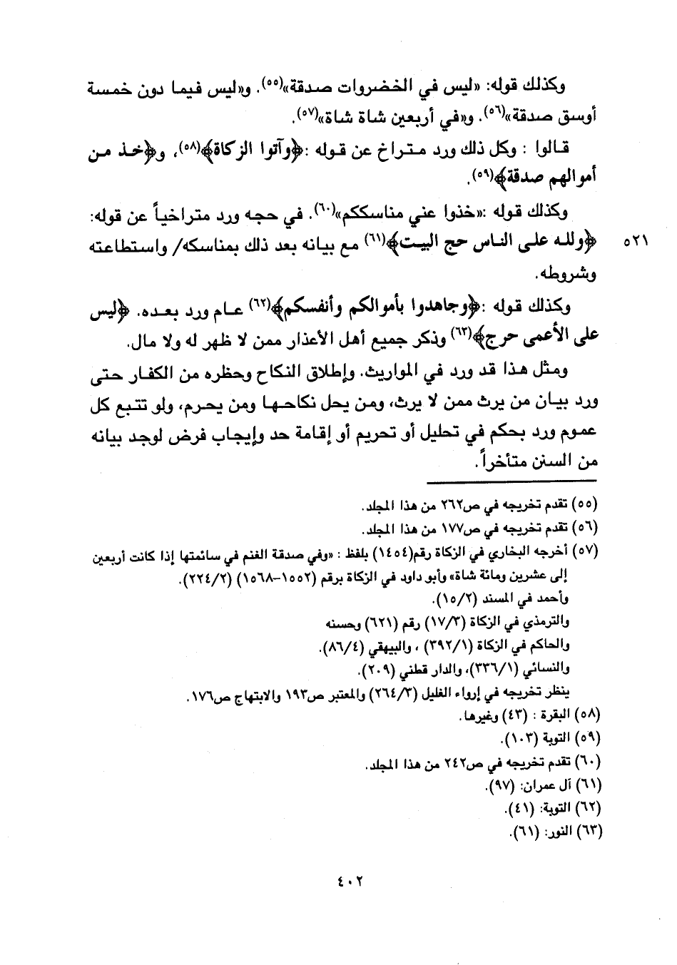 وكذلك قوله:" ليس في الخضروات صدقة". و" وليس فيما دون خمسة أوسق صدقة". وفي " أربعين شاة شاة". قالوا: وكل ذلك ورد متراخ عن قوله: {وَآتَوُا الزَّكَاةَ} , و {خُذْ مِنْ أَمْوَالِهِمْ صَدَقَةً}.