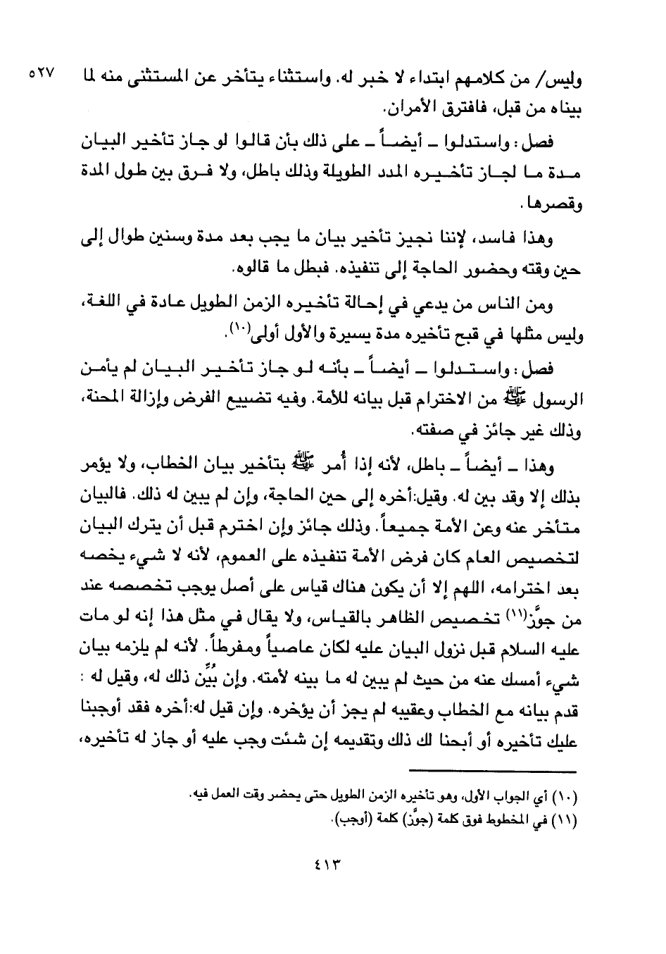 ومن الناس من يدعي في إحالة تأخيره الزمن الطويل عادة في اللغة, وليس مثلها في قبح تأخيره مدة يسيرة والأول أولى.