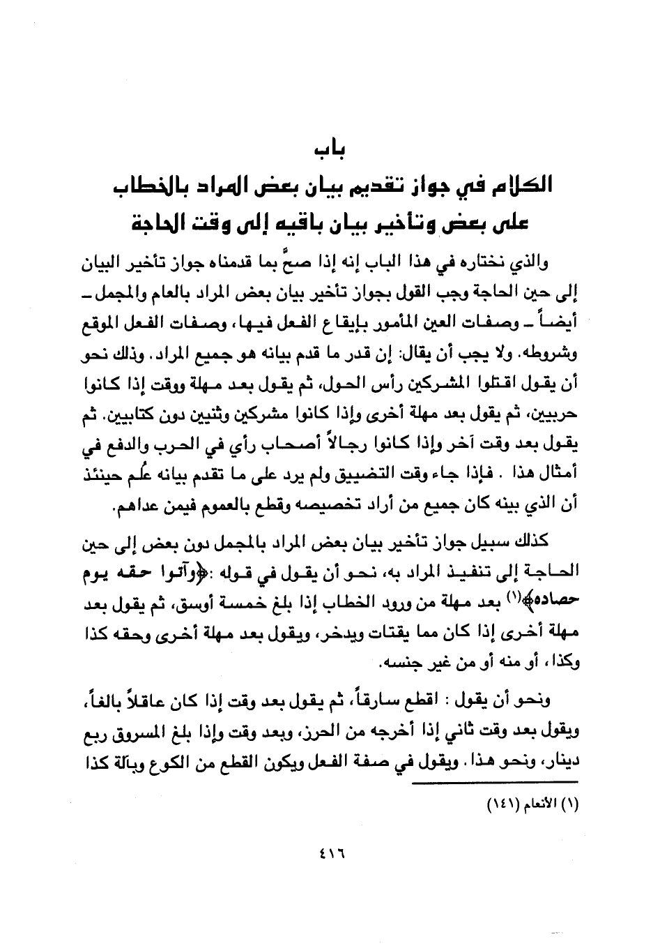 على بعض وتأخير بيان باقية إلى وقت الحاجة