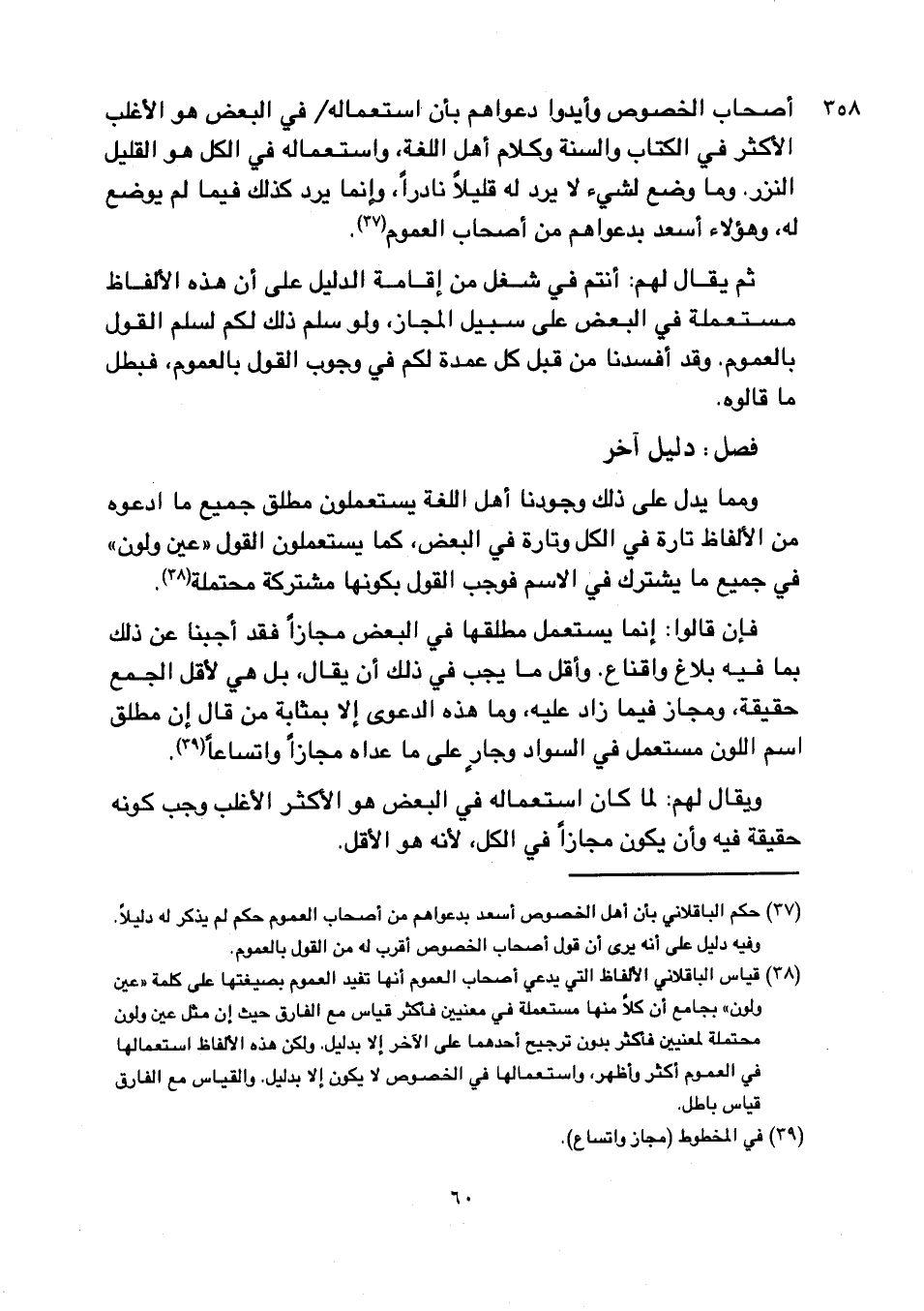 ويقال لهم: لما كان استعماله في البعض هو الأكثر الأغلب وجب كونه حقيقة فيه وأن يكون مجازاً في الكل، لأنه هو الأقل.