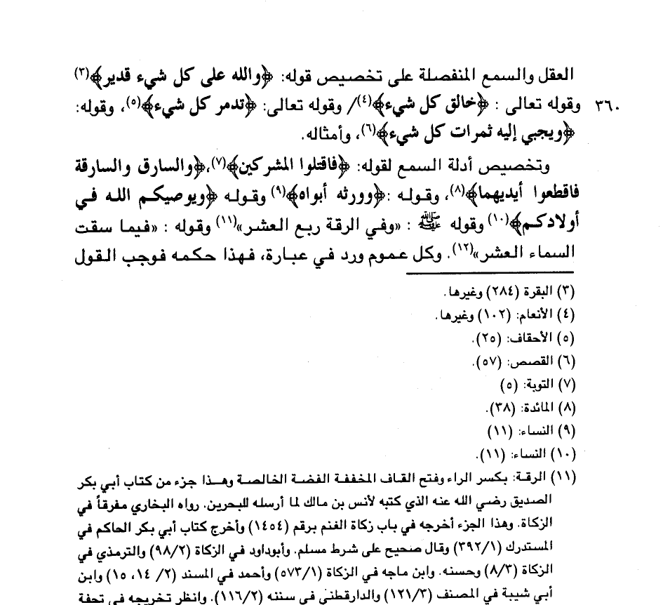 العقل والسمع المنفصلة على تخصيص قوله: {واللَّهُ عَلَى كُلِّ شَيْءٍ قَدِيرٌ} وقوله تعالى: {خَالق كُلِّ شَيْءٍ} / وقوله تعالى: {تُدَمِّرُ كُلَّ شَيْءٍ}، وقوله: {يُجْبَى إلَيْهِ ثَمَرَاتُ كُلِّ شَيْءٍ}، وأمثاله.
