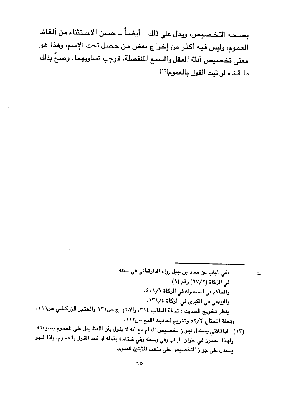 بصحة التخصيص، ويدل على ذلك- أيضاً- حسن الاستثناء من ألفاظ العموم، وليس فيه أكثر من إخراج بعض من حصل تحت الاسم، وهذا هو معنى تخصيص أدلة العقل والسمع المنفصلة، فوجب تساويهما، وصح بذلك ما قلناه لو ثبت القول بالعموم.