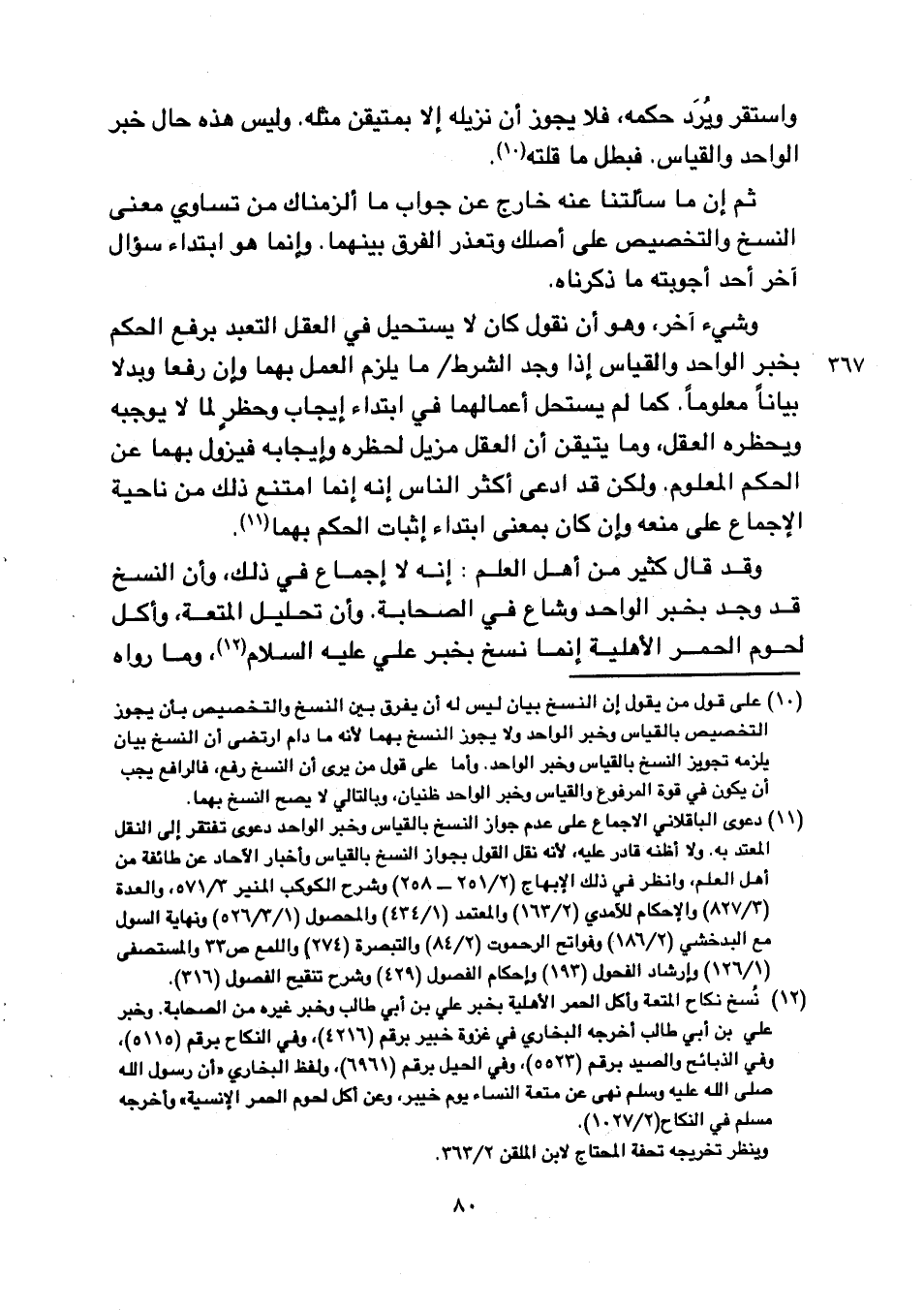 وشيء آخر, وهو أن نقول كان لا يستحيل في العقل التعبد برفع الحكم بخبر الواحد والقياس إذا وجد الشرط/٣٦٧ ما يلزم العمل بهما وإن رفعا وبدلا بيانًا معلومًا. كما لم يستحل أعمالهما في ابتداء إيجاب وحظر لما لا يوجبه ويحظره العقل, وما يتيقن أن العقل مزيل لحظره وإيجابه فيزول بهما عن الحكم المعلوم. ولكن قد ادعى أكثر الناس إنه إنما امتنع ذلك من ناحية الإجماع على منعه وإن كان بمعنى ابتداء إثبات الحكم بهما.