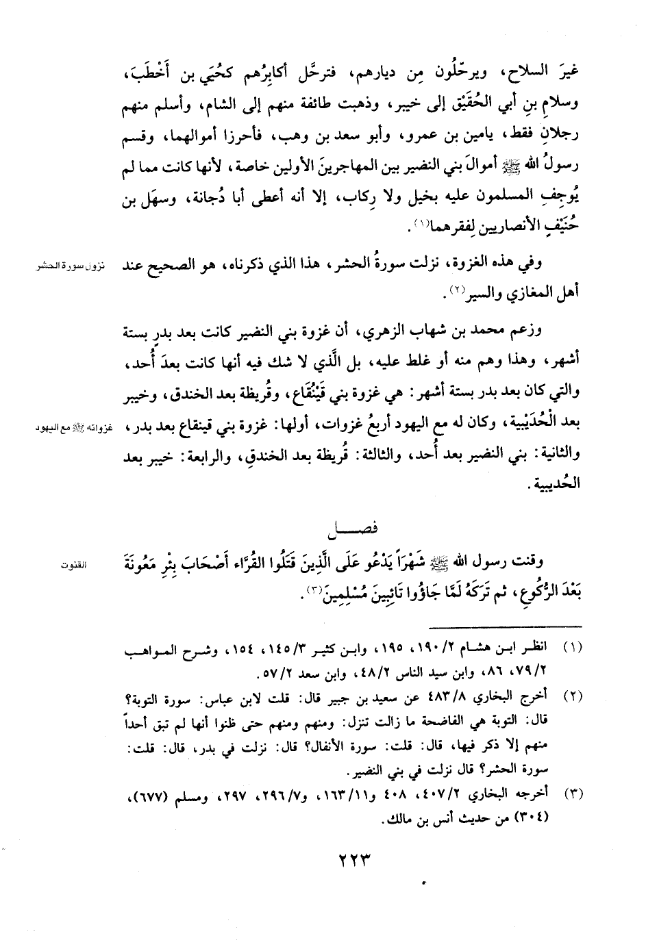 وَفِي هَذِهِ الْغَزْوَةِ نَزَلَتْ سُورَةُ الْحَشْرِ، هَذَا الَّذِي ذَكَرْنَاهُ هُوَ الصَّحِيحُ عِنْدَ أَهْلِ الْمَغَازِي وَالسِّيَرِ.