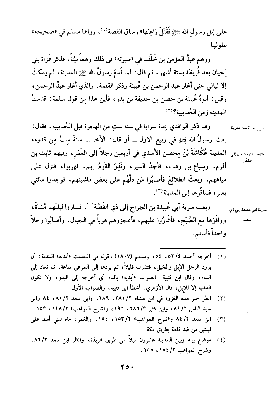 عَلَى إبِلِ رَسُولِ اللَّهِ صَلَّى اللَّهُ عَلَيْهِ وَسَلَّمَ فَقَتَلَ رَاعِيَهَا» ) ، وَسَاقَ الْقِصَّةَ رَوَاهَا مسلم فِي " صَحِيحِهِ " بِطُولِهَا. وَوَهِمَ عبد المؤمن بن خلف فِي " سِيرَتِهِ " فِي ذَلِكَ وَهْمًا بَيِّنًا، فَذَكَرَ غَزَاةَ بَنِي لِحْيَانَ بَعْدَ قُرَيْظَةَ بِسِتَّةِ أَشْهُرٍ، ثُمَّ قَالَ: لَمَّا قَدِمَ رَسُولُ اللَّهِ صَلَّى اللَّهُ عَلَيْهِ وَسَلَّمَ الْمَدِينَةَ لَمْ يَمْكُثْ إلَّا لَيَالِيَ حَتَّى أَغَارَ عبد الرحمن بن عيينة، وَذَكَرَ الْقِصَّةَ.
