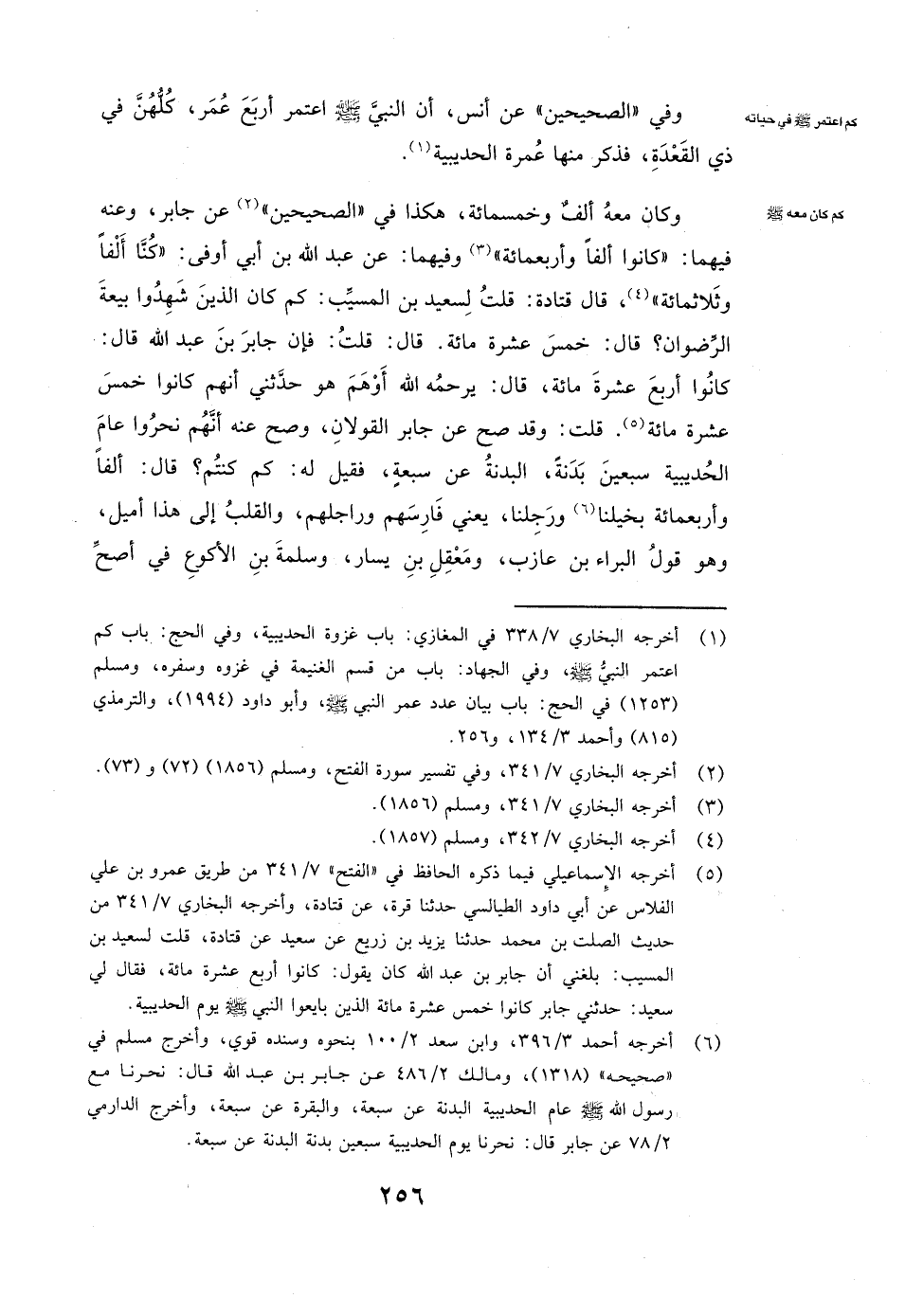 وَفِي " الصَّحِيحَيْنِ " عَنْ أنس أَنَّ النَّبِيَّ صَلَّى اللَّهُ عَلَيْهِ وَسَلَّمَ: ( «اعْتَمَرَ أَرْبَعَ عُمَرٍ كُلَّهُنَّ فِي ذِي الْقَعْدَةِ» ) . فَذَكَرَ مِنْهَا عُمْرَةَ الْحُدَيْبِيَةِ.