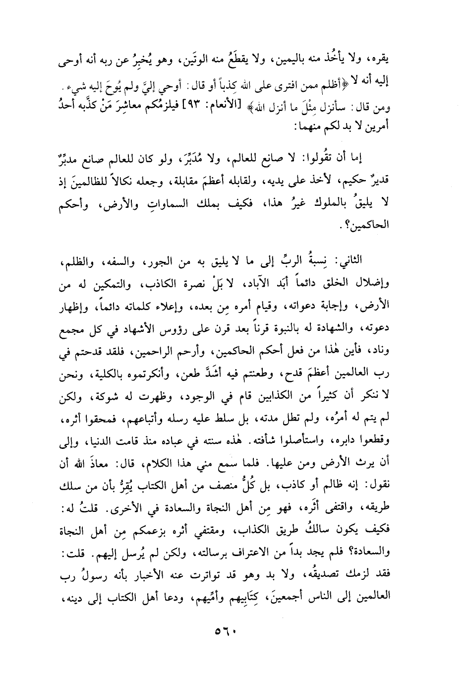 إِمَّا أَنْ تَقُولُوا: لَا صَانِعَ لِلْعَالَمِ، وَلَا مُدَبِّرَ، وَلَوْ كَانَ لِلْعَالَمِ صَانِعٌ مُدَبِّرٌ قَدِيرٌ حَكِيمٌ، لَأَخَذَ عَلَى يَدَيْهِ، وَلَقَابَلَهُ أَعْظَمَ مُقَابَلَةٍ، وَجَعَلَهُ نَكَالًا لِلظَّالِمِينَ، إِذْ لَا يَلِيقُ بِالْمُلُوكِ غَيْرُ هَذَا، فَكَيْفَ بِمَلِكِ السَّمَاوَاتِ وَالْأَرْضِ، وَأَحْكَمِ الْحَاكِمِينَ؟ .